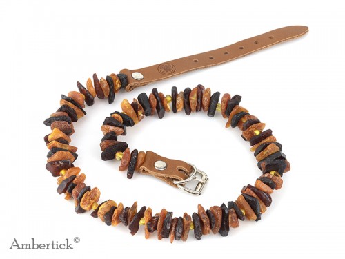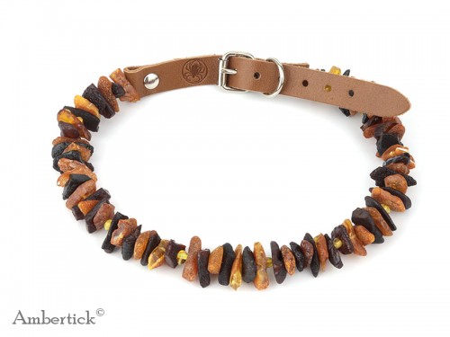Jantar je zkamenělá pryskyřice, která obsahuje aromatické chemické látky terpeny. Tyto látky se uvolňují, když se jantar zahřívá nebo tře o srst. Následně se absorbují do srsti a odpuzují klíšťata a blechy.